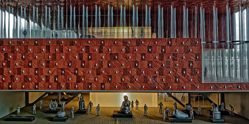 Antwerp Mas Museum : City History Museum Mas Neutelings Riedijk Architects : Climb the 'vertical boulevard' which is nothing more than the escalators all the way to the top, taking you to the massive windows on each floor.